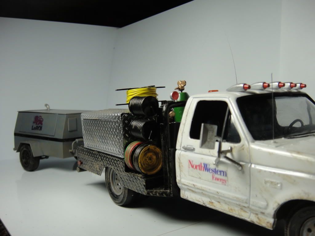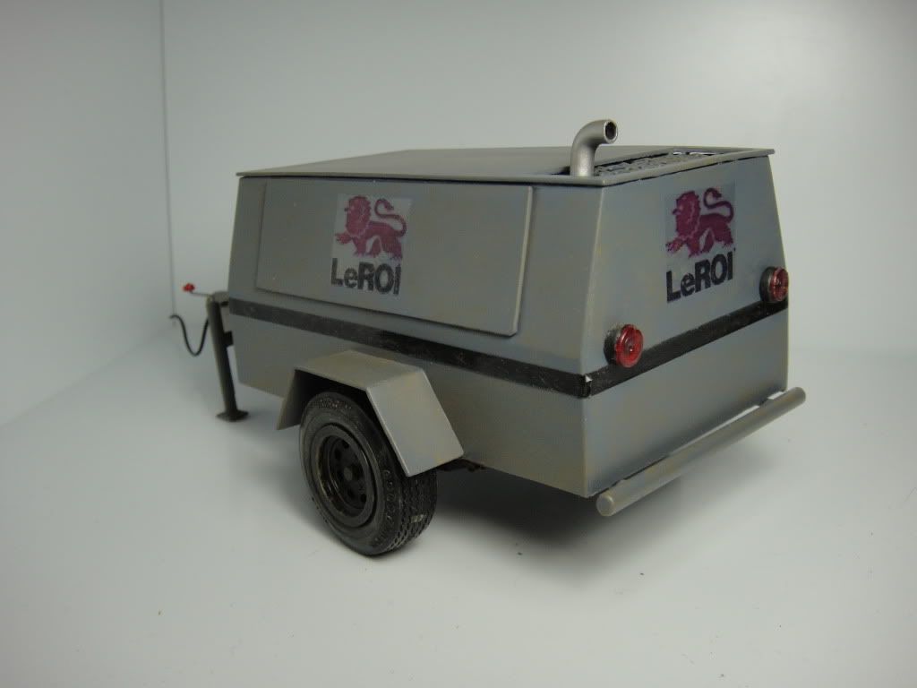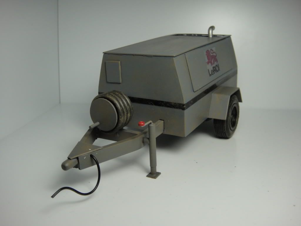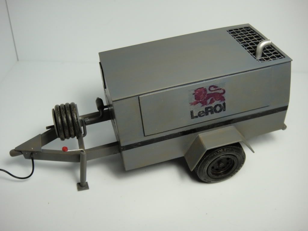 i decided to build the compressor to go with my welding truck first. everything is scratch built but the wheels/tires and springs. the hose reel is machined from aluminum and the decals were printed on my inkjet. there are also two radiators in the back underneath the open grates(couldnt get good enough picks to see them). this was lots of fun to build and goes great with the truck. maybe i will build the plow to go with it too. enjoy. andy